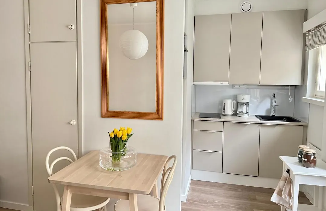 Just Renovated Stylish Nordic Studio By Tram Stopは台所も備わっています。 宿泊施設から150メートルほどのSturenkatuバス停からバスに乗って、ヘルシンキの他の地域を探索することもできます。
